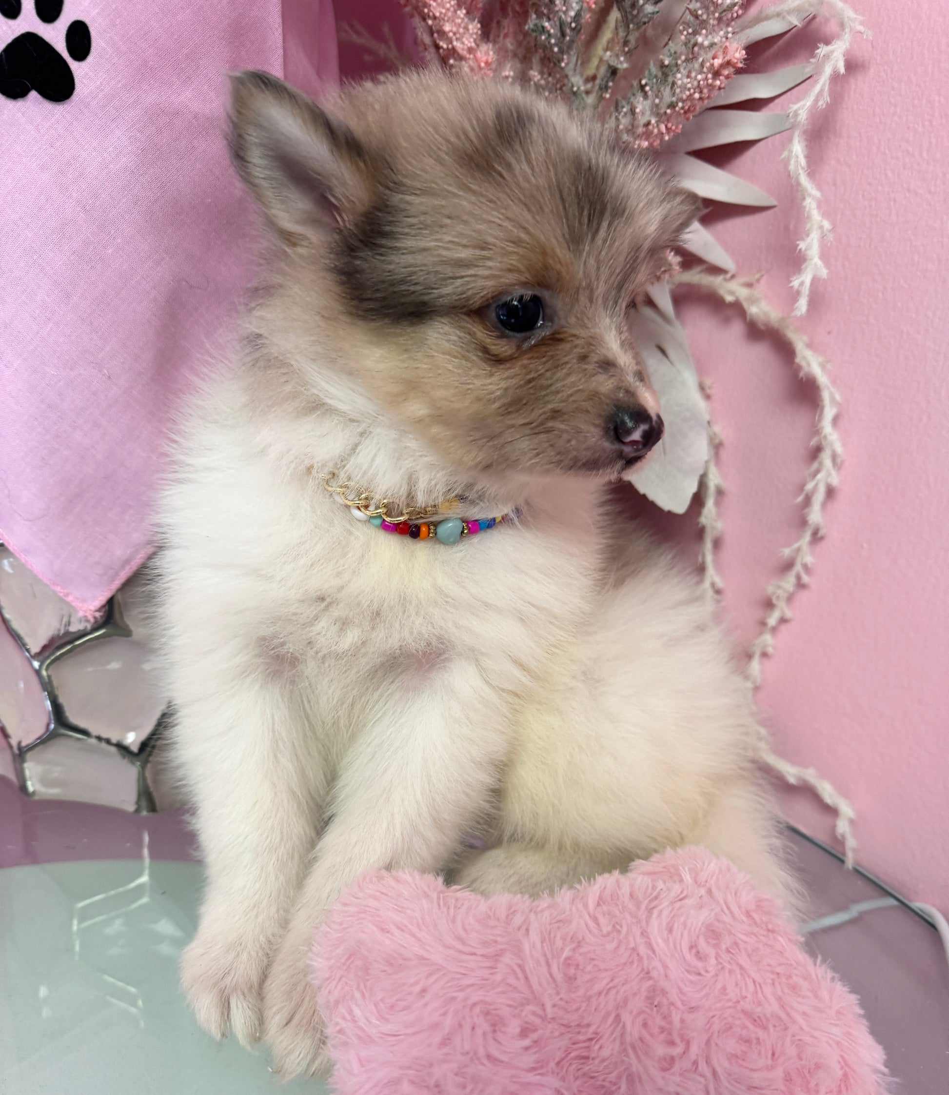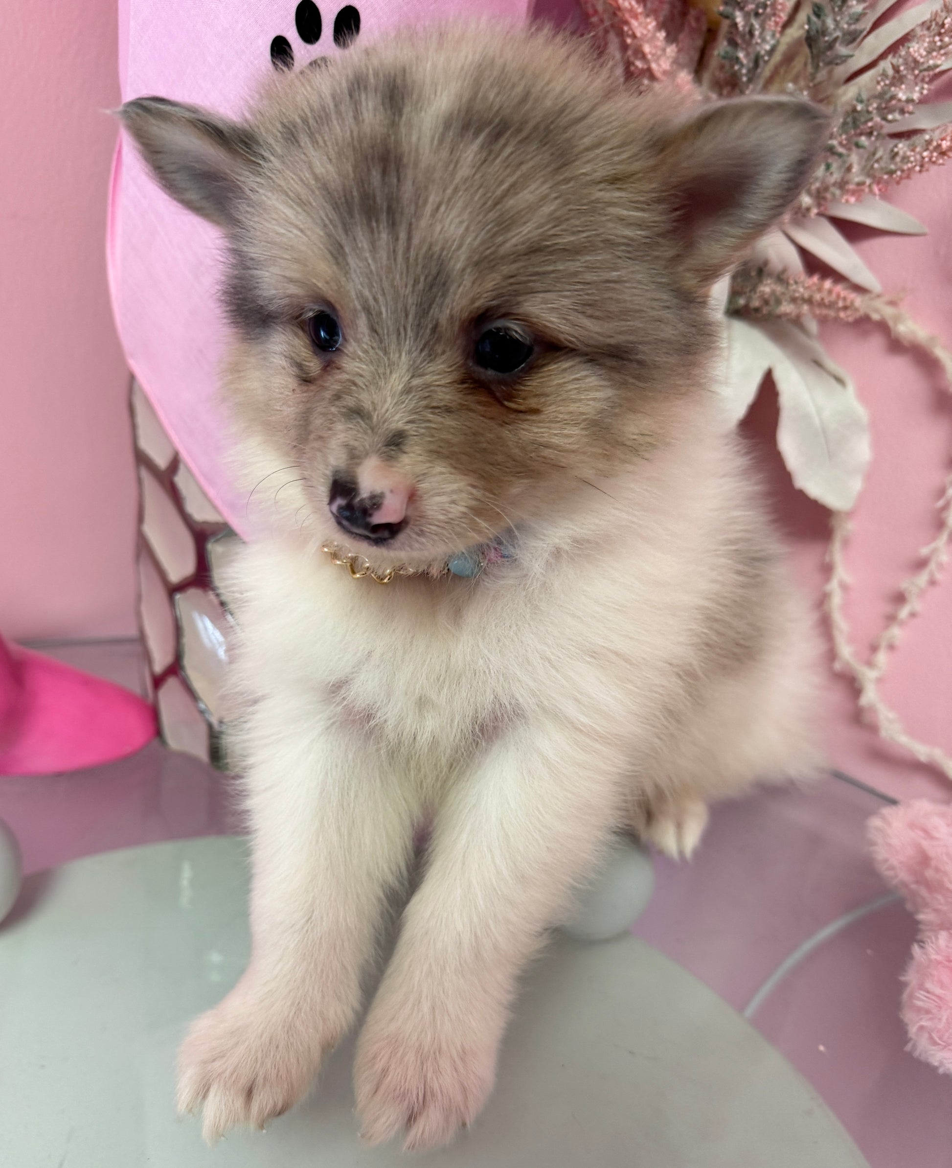 Meet Nala, our beautiful Pomsky girl with a soft, fluffy coat and a personality full of charm. A mix of Pomeranian and Husky, Nala has the perfect balance of playful energy and gentle affection. She’s curious, loving, and always ready to brighten your day.